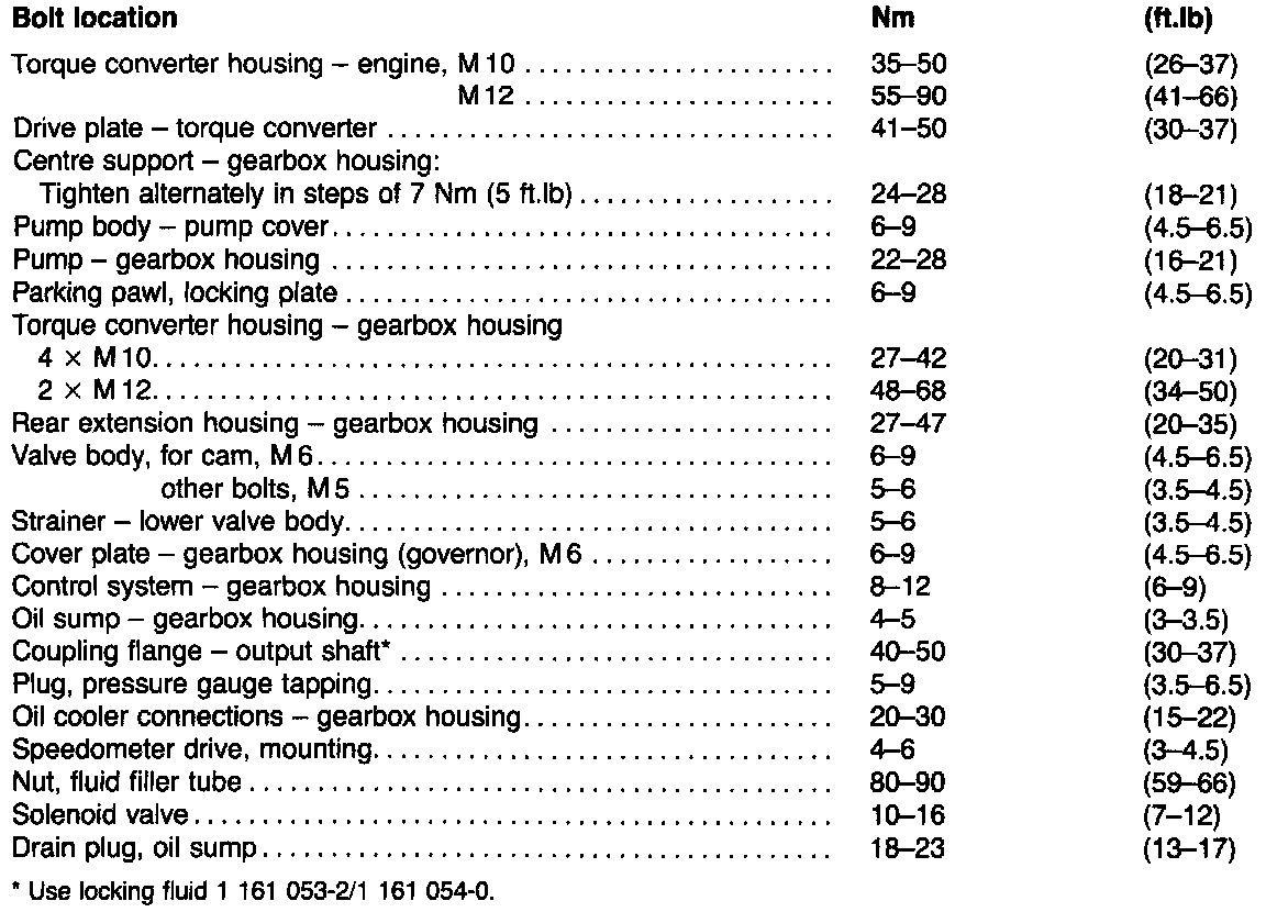 CAUTION: Automatic transmissions are manufactured almost exclusively from aluminium alloy (light alloy) with bolt and screw threads cut directly in the material. Consequently, it is extremely important that the bolts and screws engage the threads correctly and that they are tightened to the correct torque.