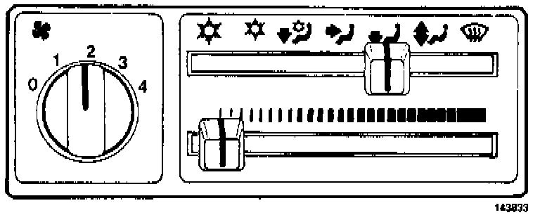 Air from panel vents. Compressor disengaged.