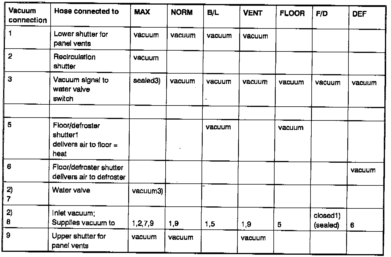 3 - When temperature control is approx. 10 mm from max. COOL or to right of it, air is admitted to port 1 of water valve vacuum switch and valve is open since it is not supplied with vacuum.