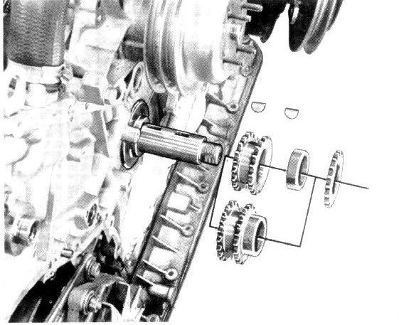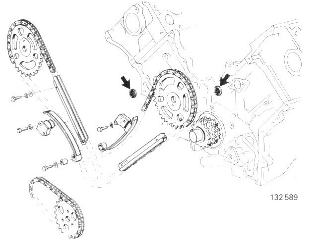 Sprockets and strainers behind the chain tensioners must be replaced if chains are replaced.