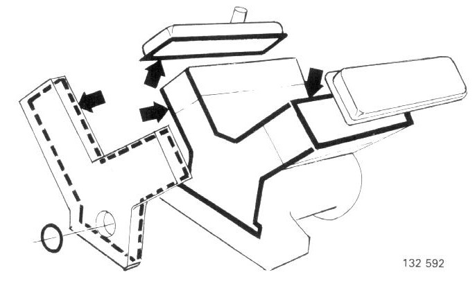Use new gaskets. Apply sealing agent (PIN 116 1026-8) to a few places to secure gaskets.