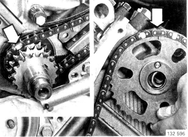 When the crankshaft has been rotated, the marks for the chains and sprockets do not coincide. It is necessary to rotate the crankshaft a larger number of turns to obtain the correct position