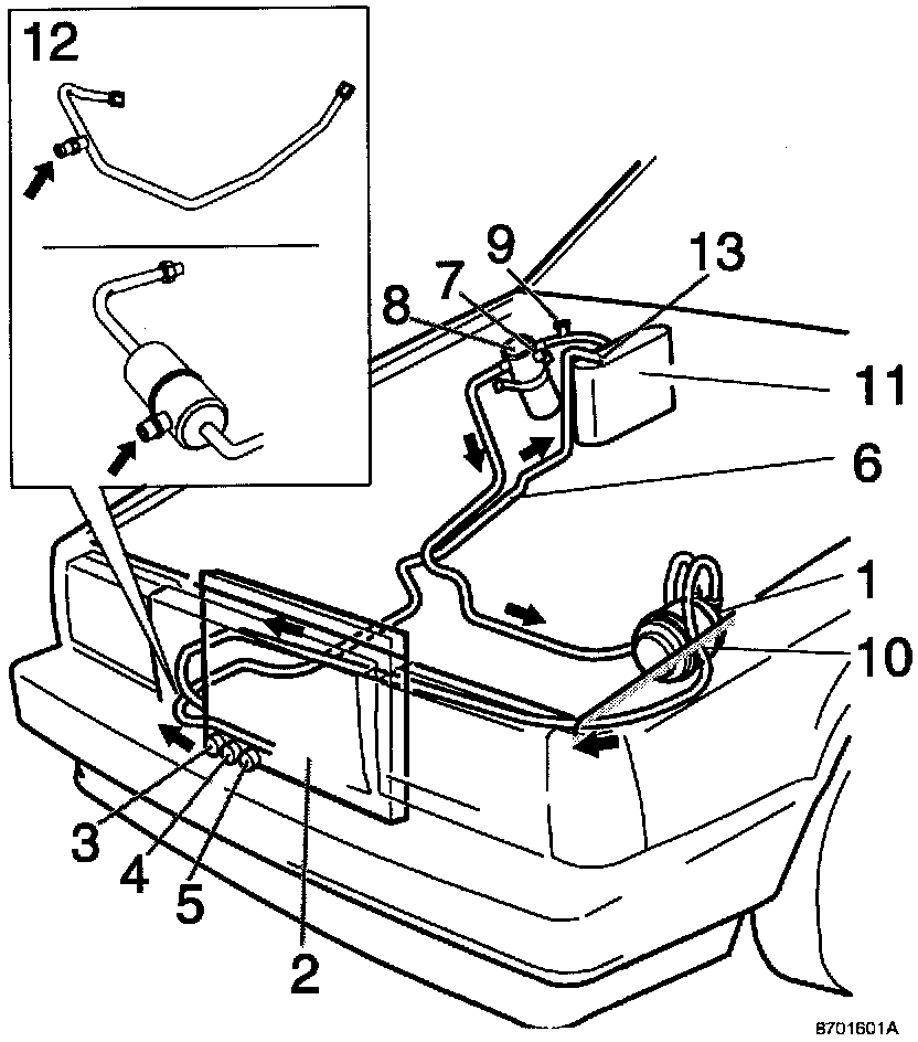 ^ The availability of sufficient heat is essential to boiling. This heat is drawn from the air around the evaporator in which boiling occurs and the surrounding air is cooled as the refrigerant absorbs the heat. It is this cooled air which is blown into the passenger compartment by the blower. The heat absorbed by the refrigerant in the evaporator is discharged to the air in the engine compartment by the condenser, which is cooled by the natural air flow and/or by the engine cooling fan (FC).