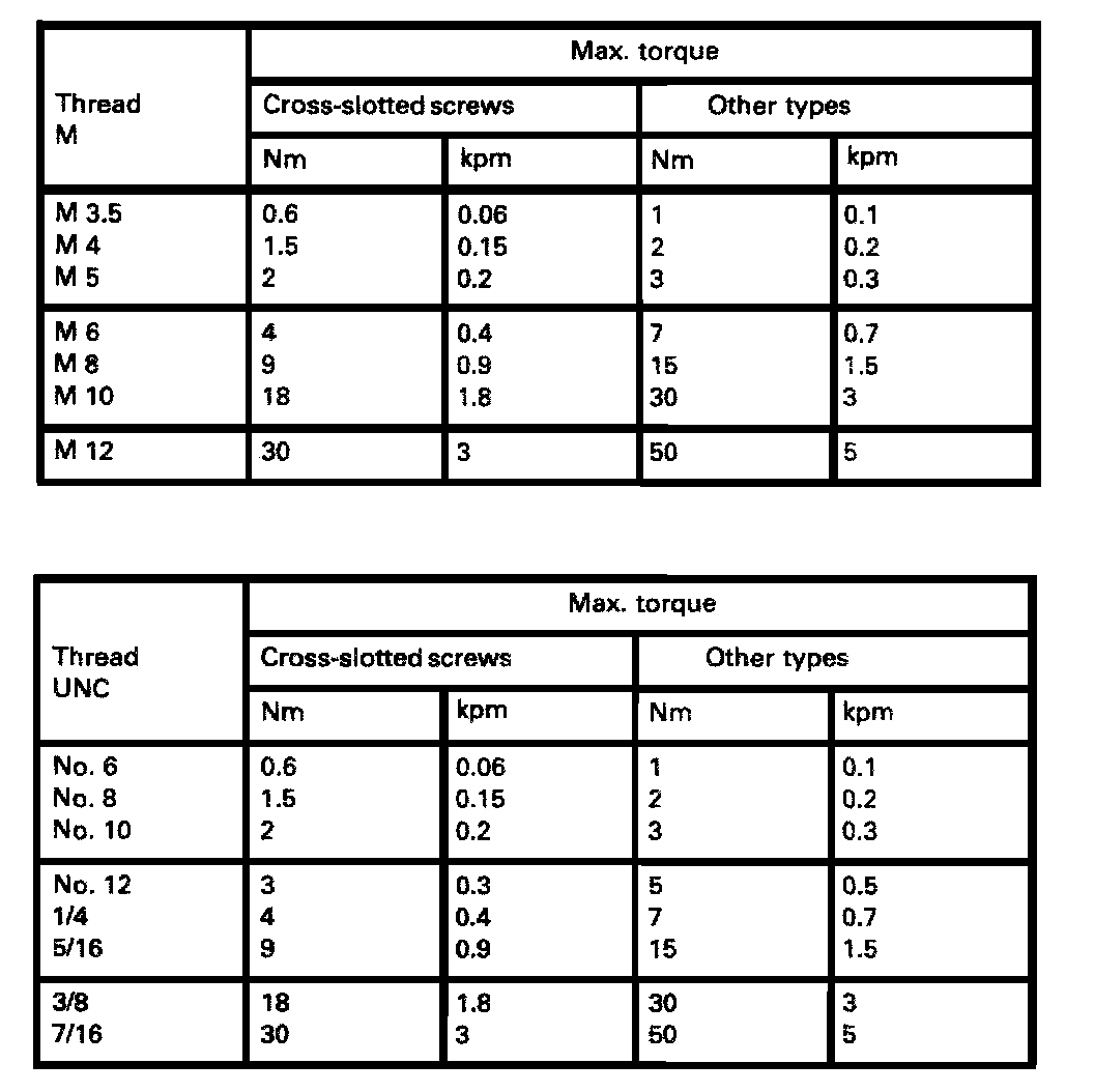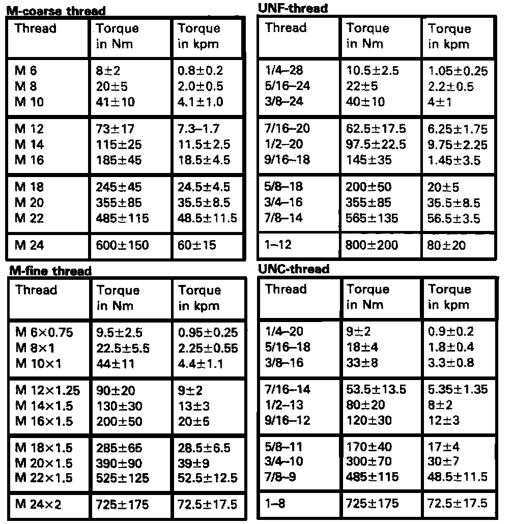 Tightening Specifications