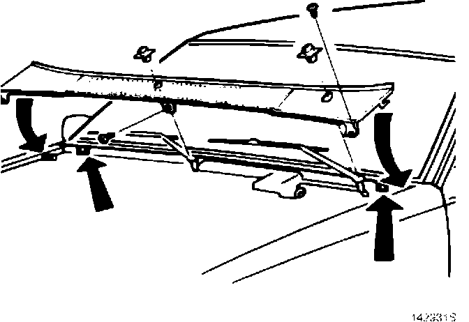 Since the cowl panel may be difficult to remove, tape the rear edge of the hood to protect the paintwork.