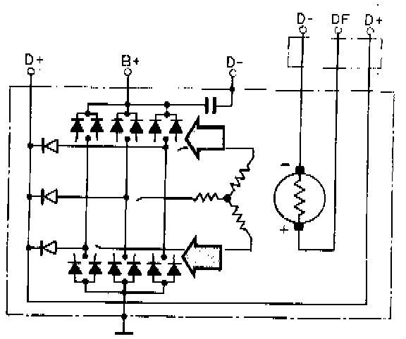 F7 NOTES: Bosch N1 14 V 70 A 20, N1 14 V 90A alternators. Disconnect twin, parallel-connected power diodes and proceed to F8.