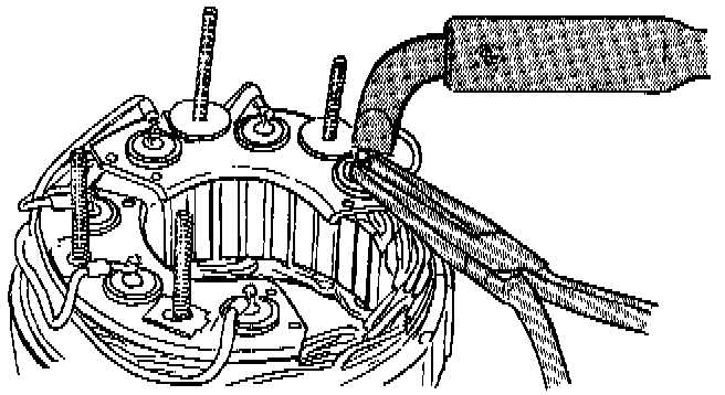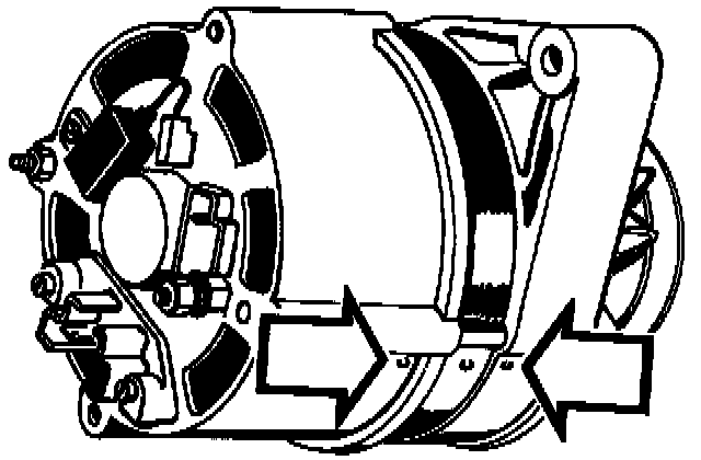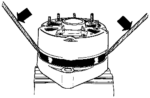 NOTE: Clamp alternator in a vise and separate two housings using two screwdrivers. Do not insert screwdrivers more than 2 mm (1/4 in.) otherwise stator coil may be damaged.