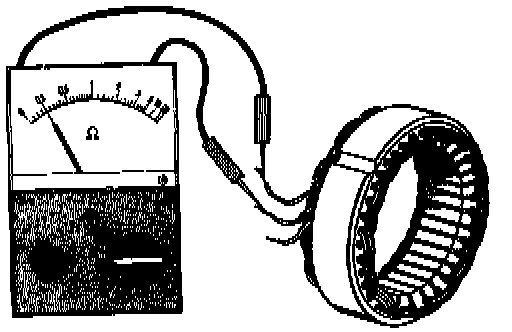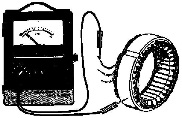 Connect one meter probe to stator body and other to a phase terminal.