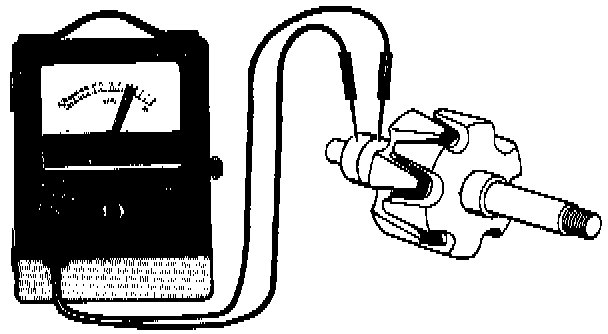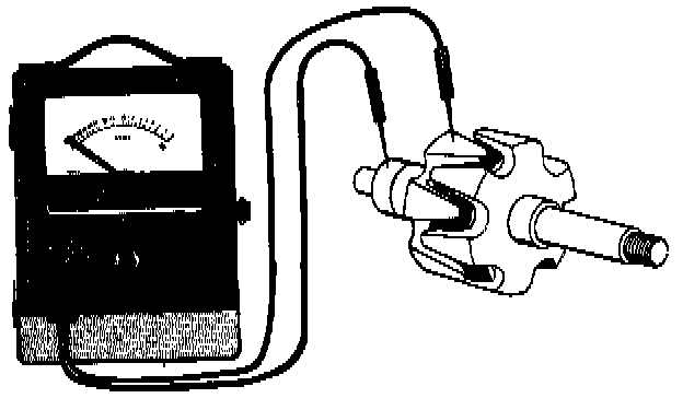 Connect meter probes between stator body and slip ring.