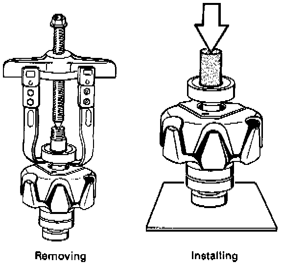 Use a puller to remove bearing if worn or damaged. Install using a sleeve to press on bearing inner race.