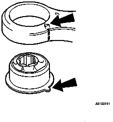Locate the new bushing to the top of the control arm so that the markings correspond.