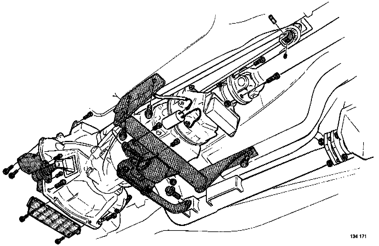 6. Attach gear shift rod to gear shift lever. Connect propeller shaft. Use tool P/N 5224.