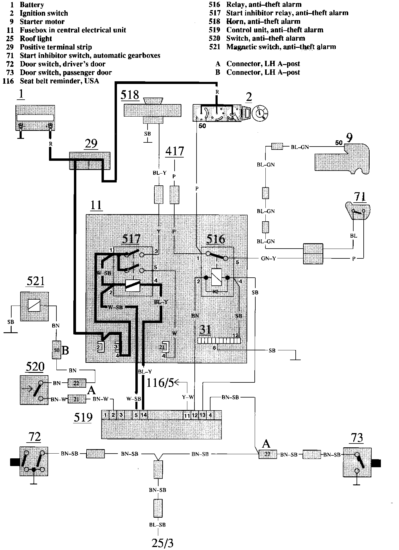 Anti-Theft Alarm Wiring Circuit: