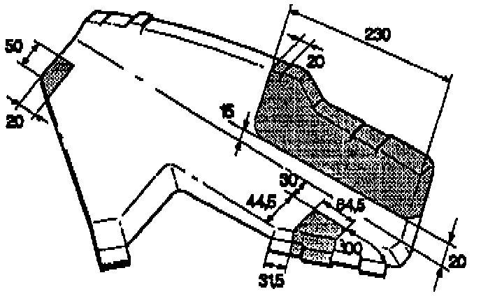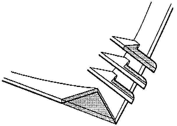 The upper of the three front catches should be cut off and the two lower catches cut as indicated by the shaded areas in the illustration.