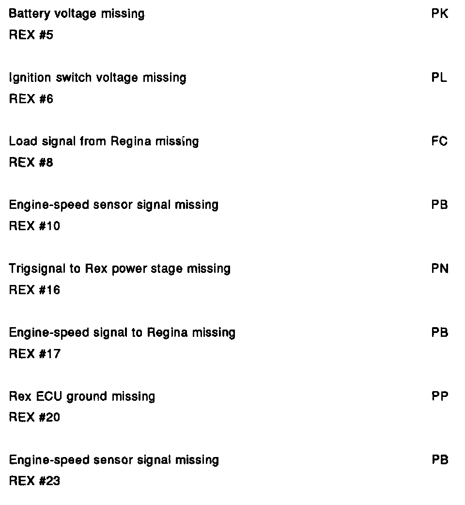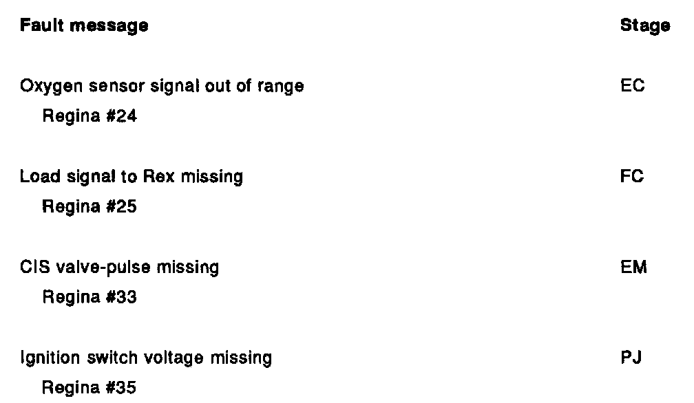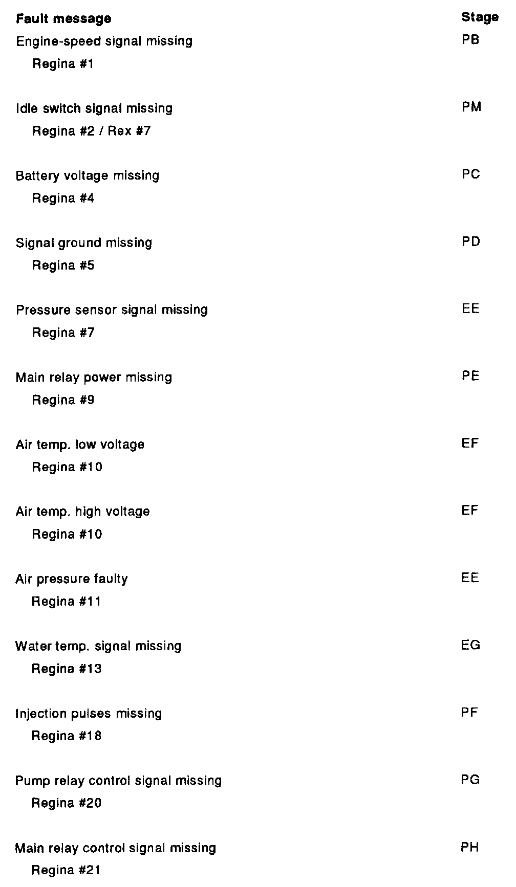 PA. Fault Message Table For Running Test