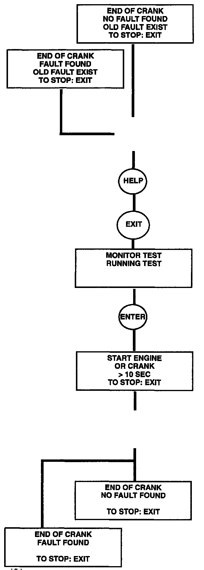To continue fault tracing the old fault message must be read and deleted. Leave Running Test and return to it again in order to carry out a complete test in start mode. Note that the old fault message need not necessarily have any connection with the engine not starting.