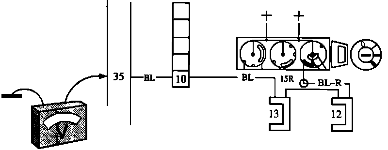 7. Connect a voltmeter between pin 35 at ECU connector and ground (checking ignition switch).