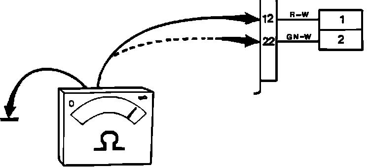 6. To check that the test point is not grounded, connect an ohmmeter between pin 22 (oxygen sensor system test point) and ground.