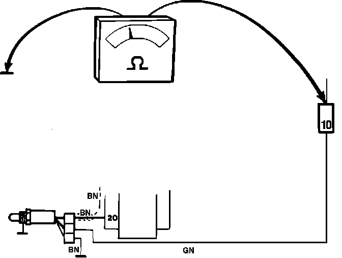 6. To check the oxygen sensor (lambda sond) pre-heating element, connect an ohmmeter between terminal #10 in 20-pole connector (located next to right side A-post) and ground.