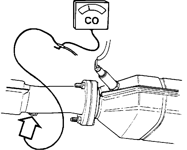 8. Connect a CO-meter to the test port in the exhaust system. Use VOLVO tool #5151 or equivalent to access the test port.