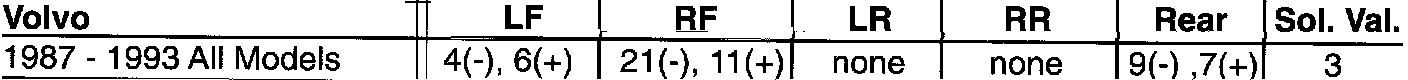 *** Not all Bosch ABS 2 have a Solenoid valve on the right rear wheel. This does not mean that if a system has only three solenoid valves that it will only have three wheel speed sensors. These differences are sorted out in the chart.