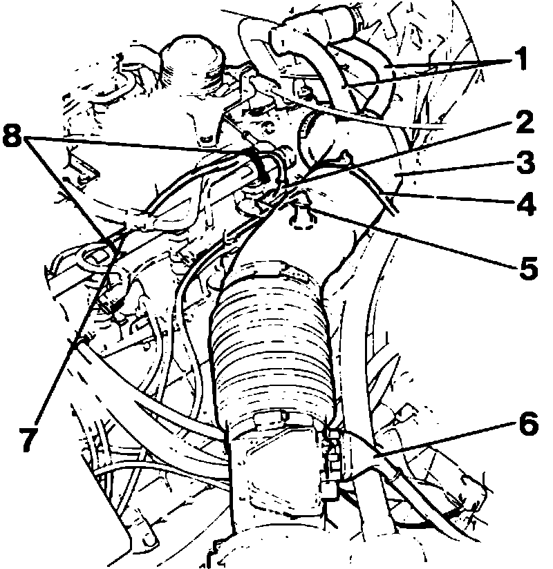 Ignition cable (5) from cyl. 1 spark plug.