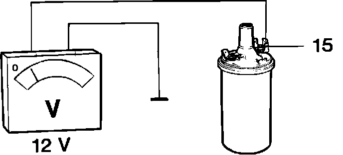 2. Measure voltage between ignition coil terminal 15 (blue) and ground.