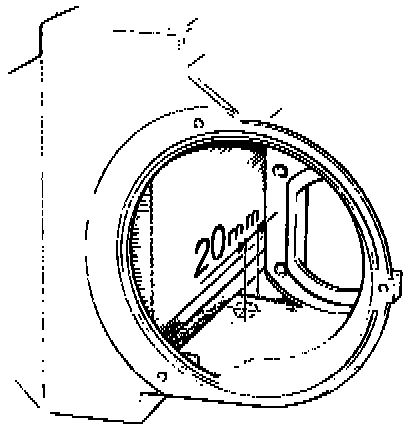 3. Drill a 16 mm (0.63 inch) hole in the bottom left side of the heater housing, 20 mm (0.79 inch) from the outer edge of the housing.