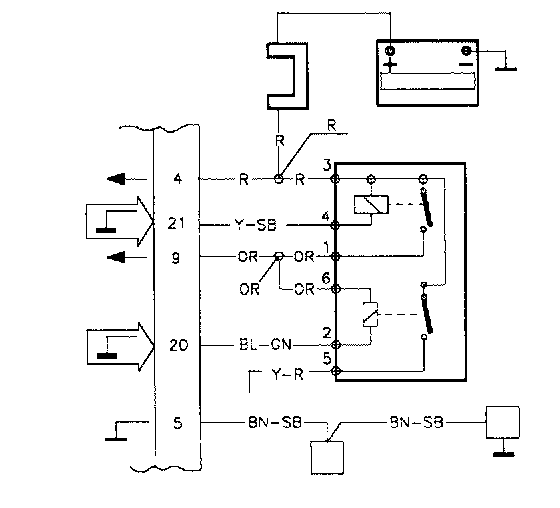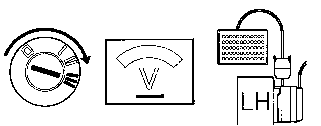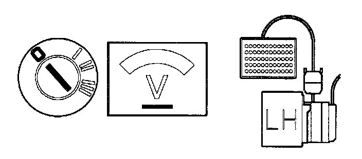 Connect a voltmeter between the left-hand terminal on the fuse box from the battery in the engine compartment (-90) or the right-hand terminal on fuse no.6 (91-) and GND.