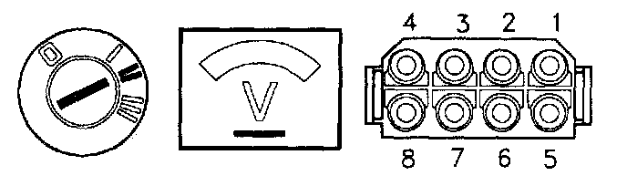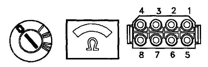 Connect an ohmmeter between terminal 8 in the connector and GND.