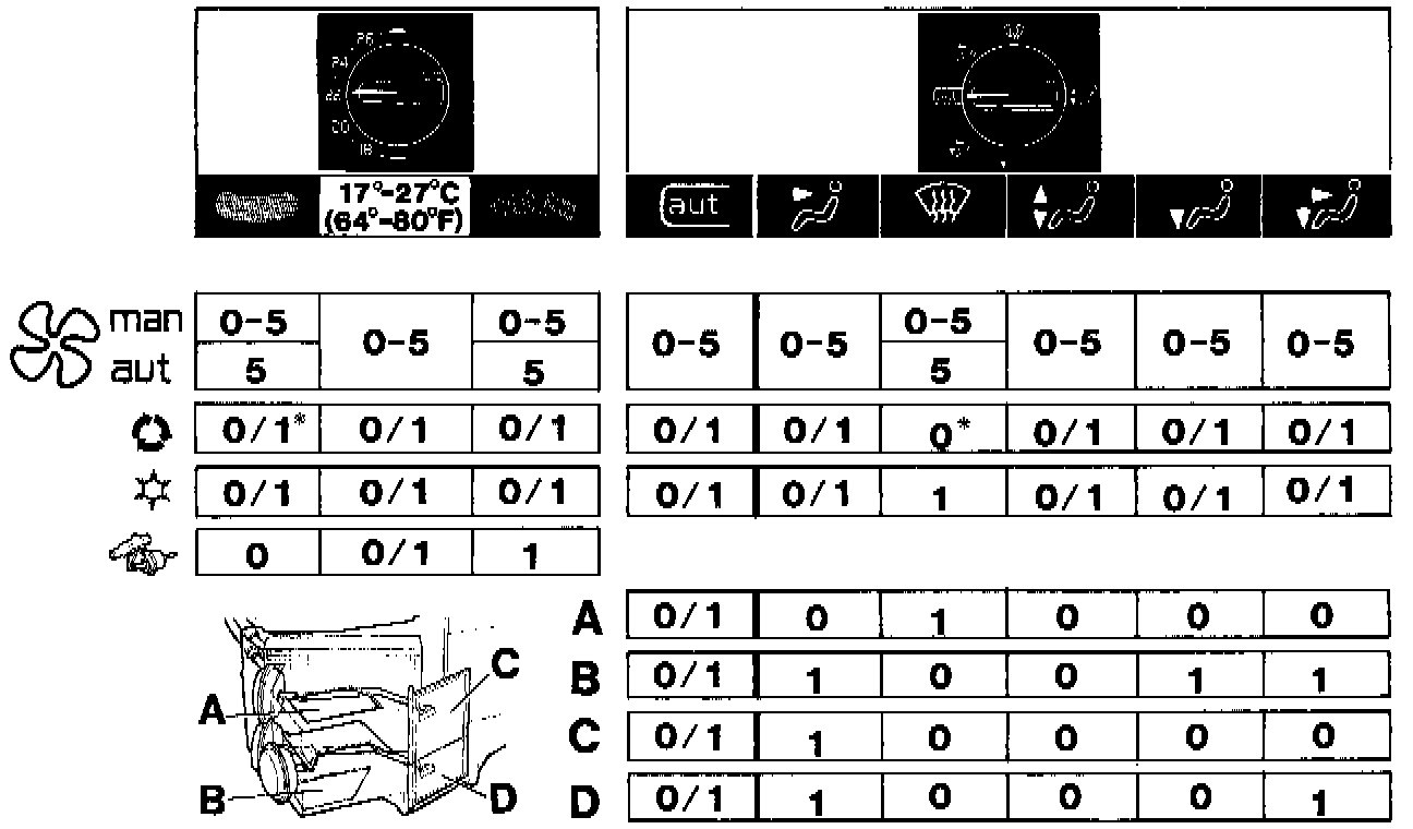 - "0/1" indicates either 0 or 1, depending on other selected settings or whether the blower is on automatic.