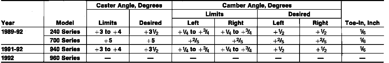 Wheel Alignment Specifications:
