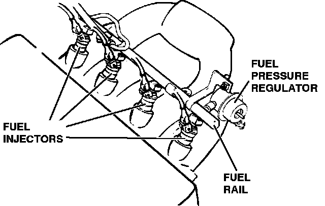 Fuel Injector, Pressure Regulator And Rail Location: