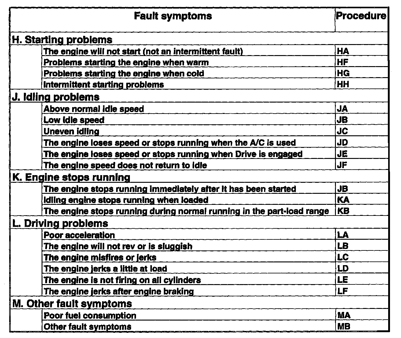 IMPORTANT: faults which occur intermittently or cannot be detected when the car is examined can be traced using the Volvo ST. However, not all fault symptoms in the list can be found with the ST, uneven Idling for example. Always follow the Instructions for each separate fault symptom.