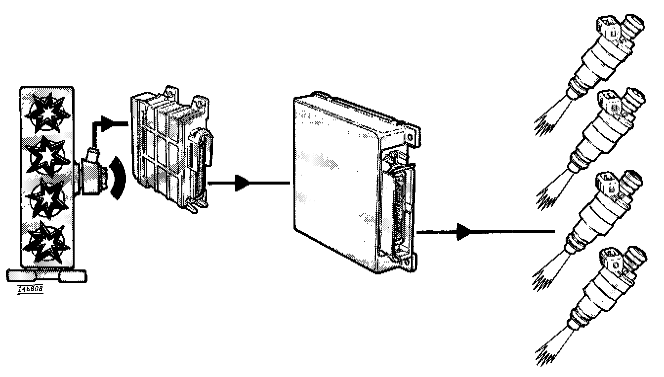 This means that the timing in each individual cylinder is corrected if knock occurs. Under these conditions, the ignition is retarded successively in the cylinder affected. If this measure is not sufficient, the device transmits a signal to the fuel system control unit which enriches the fuel/air mixture to reduce the combustion temperature and suppress the tendency to knock.