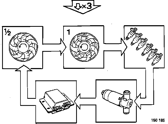 1. Radiator fan at half speed (3 seconds).