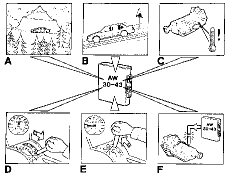 Apart from the driving modes which can be selected manually by the driver (E, S and W), the system incorporates a number of permanently preprogrammed TCM functions to ensure that the correct gear is selected at all times in relation to external conditions which, in most cases, produce a change in load or temperature in or around the engine and transmission. The permanent special functions are: