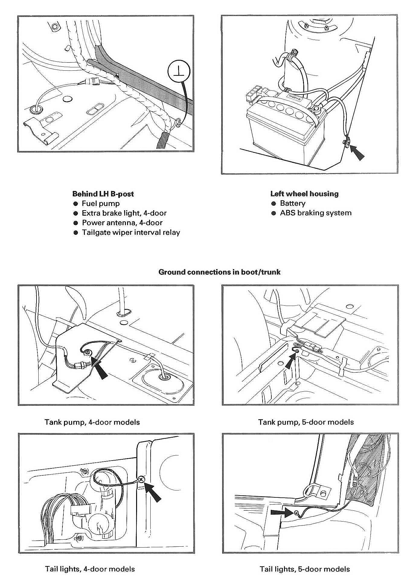 Behind LH B-post / Left Wheel Housing / Trunk: