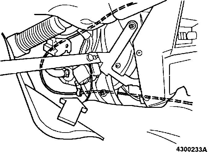 Adjust cable so that clearance between ball on cable end and operating arm in selector mechanism is approx. 1.5 mm (0.06 in.).