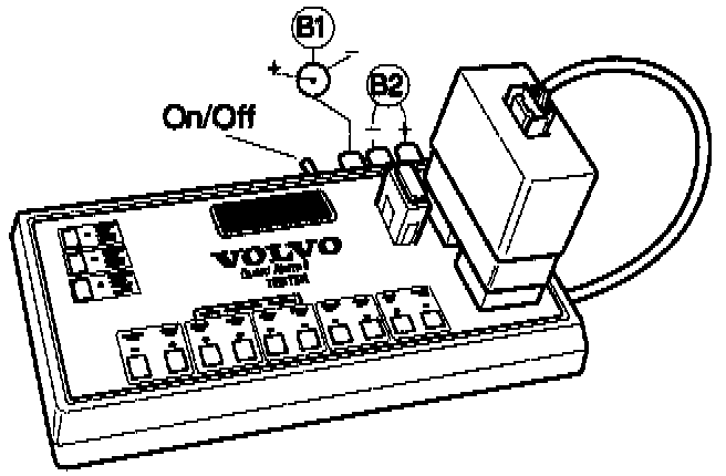 Connect programing box to car or mains unit's cigarette lighter socket using the interface lead (terminal B1). The power source must be capable of supplying at least 800 mA at 12 - 13.6 V DC. A suitable 220 V mains unit with cigarette lighter socket is P/N 1363588-3.