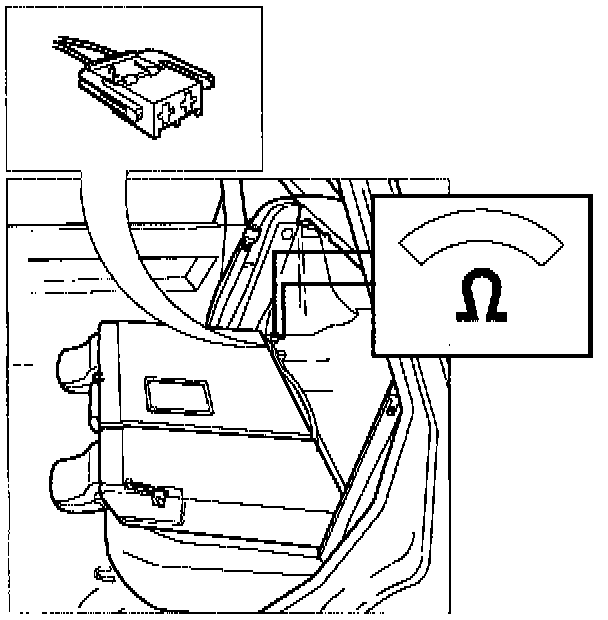 - Connect an ohmmeter across the terminal pins on the backrest connector.