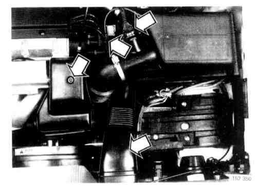 NOTE: If the car is fitted with cruise control, undo vacuum hose and wiring for the vacuum motor.