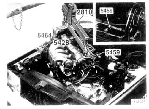 - Lift out engine, use lifting yokes tool No. 999 2810 and tool No. 999 5428, or equivalent.