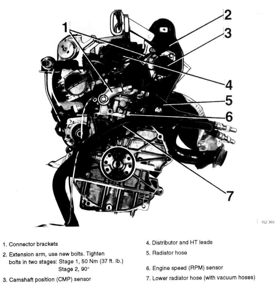 - Reinstall the flywheel using the three special screws and tighten (diagonally) to: 45 Nm (33 ft lb)
