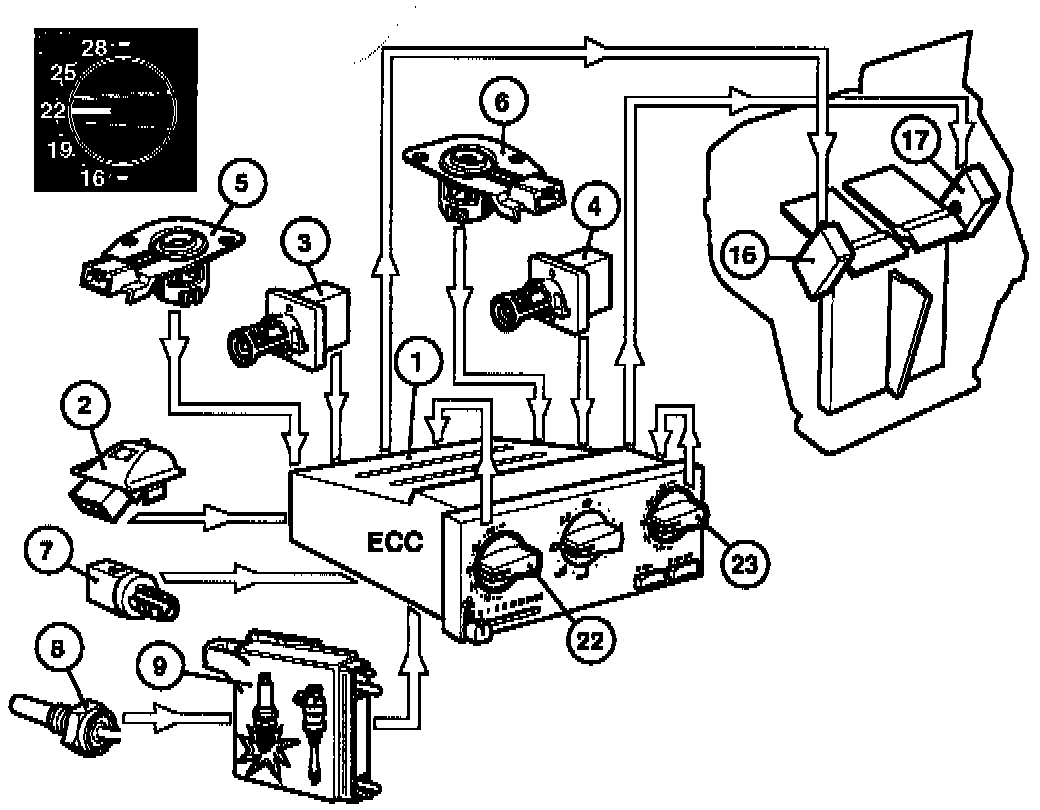 - Engine Temperature (8, 9) And Outside Temperature (7). If the engine is cold and the outside temperature low, the dampers are set for more heat to reach the desired temperature faster.