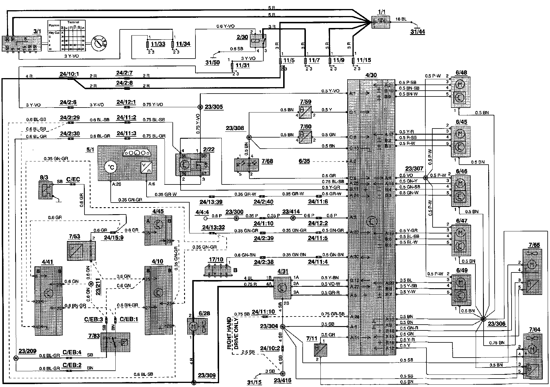 23/305 Branching point, X+ supply, heater fan / A/C