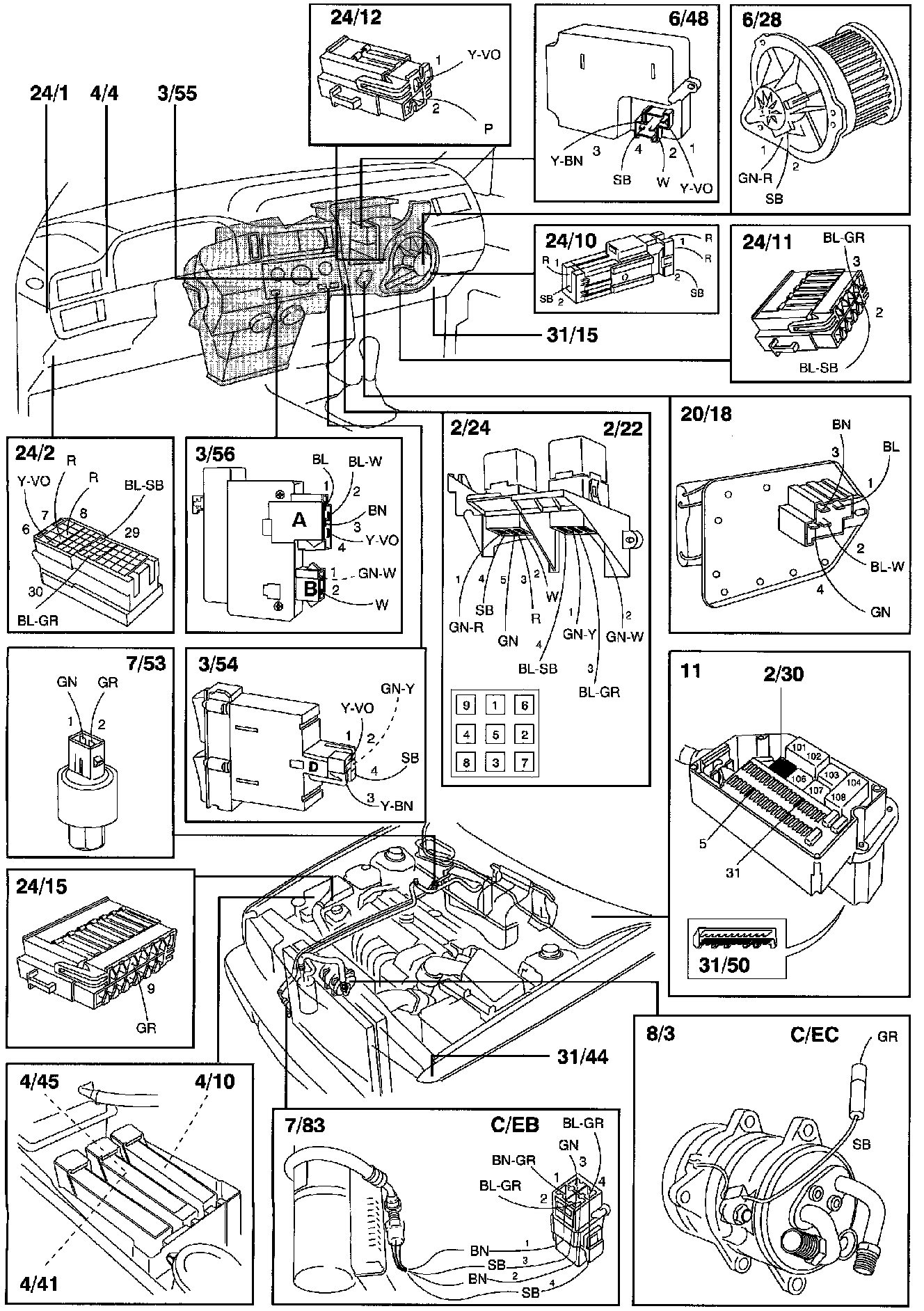 23/308 Branching point, signal ground, temperature sensor ducts, solar sensor ECC