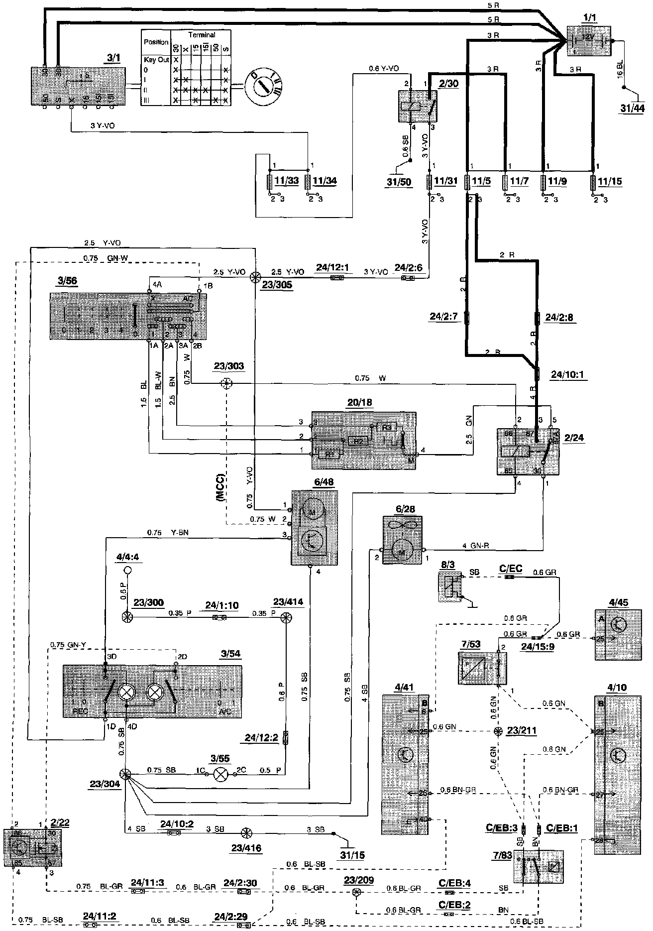 23/305 Branching point, X+ supply, heater fan / A/C