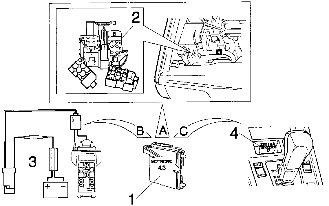 The diagnostic socket consists of a button, an LED and a selector cable. To fault trace the system, the selector cable is placed in output #2. By pressing the button once, twice or three times (depending on control function required), the ECU is accessed.