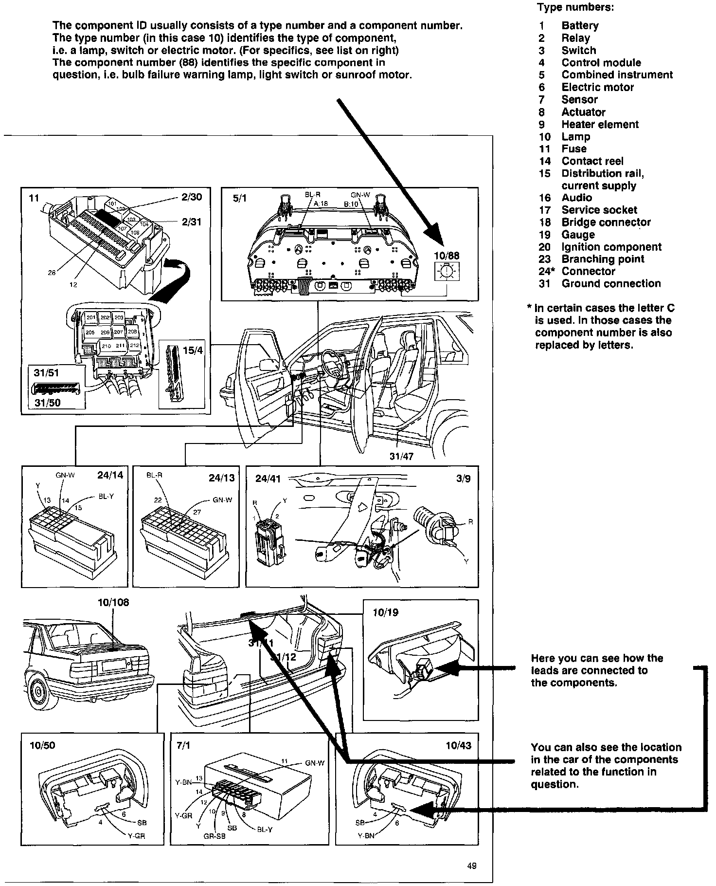 23/415 Branching point, ground, radio, amplifier 31/15 A-post passenger's side